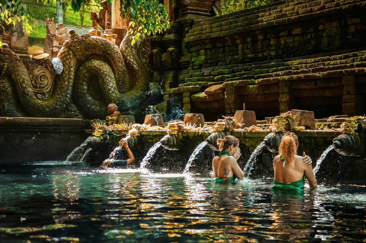 聖泉,被視為毗濕奴的化身,象徵著「清淨、生命與重生」。在峇里人心中,聖泉寺佔據著極其重要的地位。據說不同的聖泉出口有不同的功效,有的可以消災解禍、驅逐病痛,有的可以洗滌心靈。※旅人可現場自行決定是否體驗聖泉淨身儀式。
