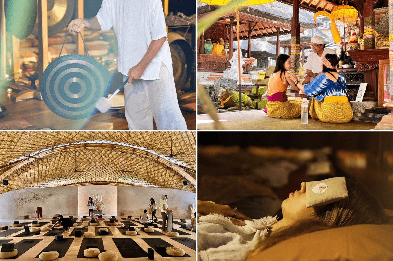 旅途中我們將遠離塵囂,體驗多堂在地療癒工作坊,循著老師的溫和引導,透過五行瑜伽、聲音療癒等療癒體驗,緩緩釋放身心壓力。與峇里島的自然美景交融,在寧靜氛圍中體驗金字塔音療的神祕音律、SPA放鬆感受深度舒緩,享用讓食物選擇我們的魔法饗宴,並在藥師賴爺看手相的引導中,找回那份由內而外的自在與微笑。