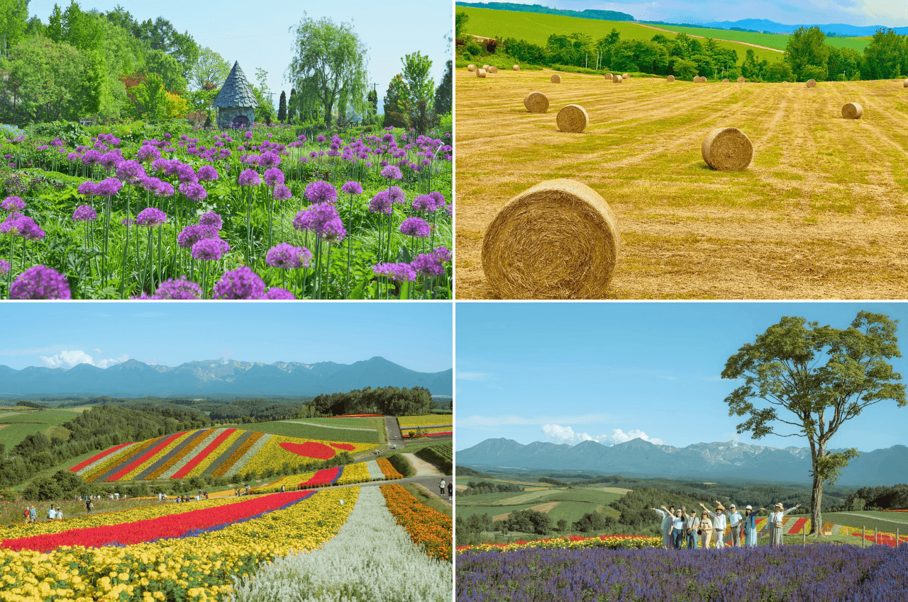 美瑛曾經被譽為「全日本最美麗的村莊」,起起伏伏的緩丘,種植了不同的花草,包含北海道薰衣草、杜鵑、鬱金香、紫丁香、向日葵、玲蘭,以及許多當地原生植物,夏天百花齊放之際就有如五彩繽紛的「花之絨毯」。