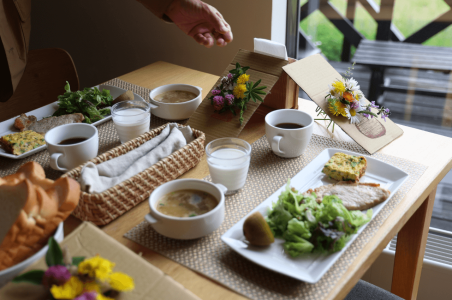 早晨享用民宿以北海道的在地食材,為旅人帶來純淨自然的早餐饗宴。餐點中可以品嘗到當地酪農生產的新鮮牛奶、北海道知名的森彥咖啡,以及四季旬味,讓旅人在舒適的用餐環境中,享受一頓美味的朝食,為一天的旅程注入活力與美好。(※民宿早餐將依四季食材,隨季節變化的無菜單料理。)