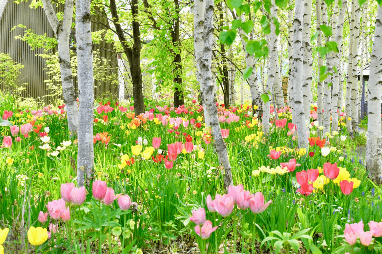 美瑛曾經被譽為「全日本最美麗的村莊」,起起伏伏的緩丘,種植了不同的花草,包含北海道薰衣草、杜鵑、鬱金香、紫丁香、向日葵、玲蘭,以及許多當地原生植物,夏天百花齊放之際就有如五彩繽紛的「花之絨毯」。