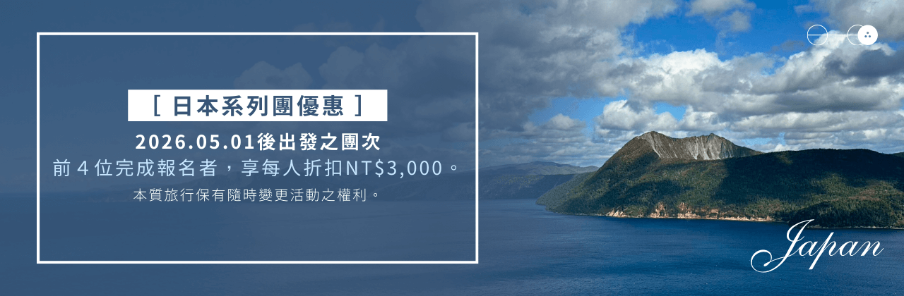 ▶︎2026.05.01後出發之團次,前4位完成報名者,每人折扣NT$3,000元。