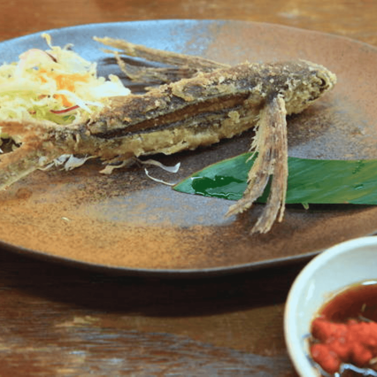 森林之後,回到在地食堂用餐。飛魚是屋久島常見食材之一,清爽、帶點海味,是這座島最日常的味道。