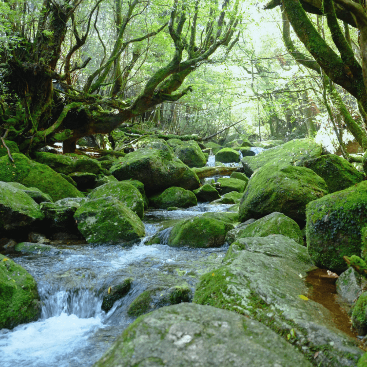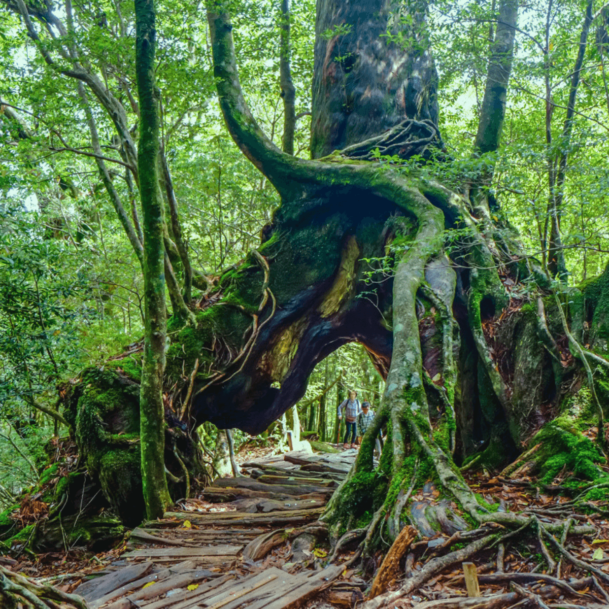 這裡是吉卜力《魔法公主》靈感來源之一,也是屋久島最具代表性的原始森林樣貌。因為全年高降雨量,森林長期維持濕潤環境,岩石、倒木與地表幾乎都被柔軟苔蘚覆蓋,形成宛如被時間包裹的綠色世界。我們將在當地嚮導的帶領下,走入苔蘚森林的深處。