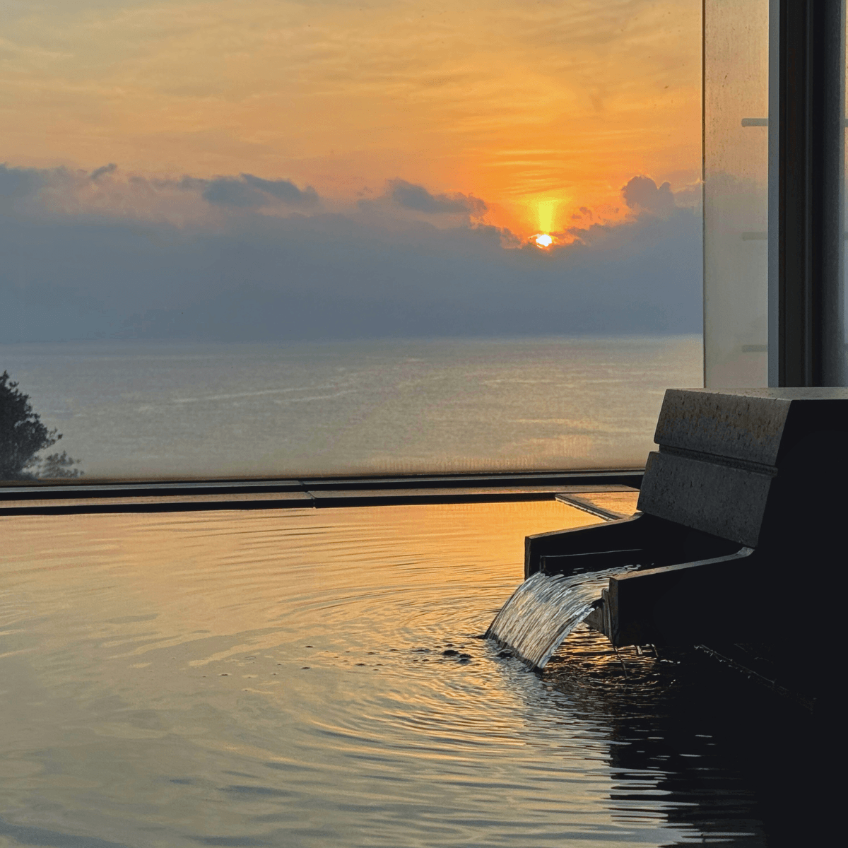 在室內和露天浴池中, 飽覽壯闊的海景,享受以卓越的美容功效、和滋養不刺激的質地聞名的鹼性簡單溫泉,一掃日常堆積的疲勞。
